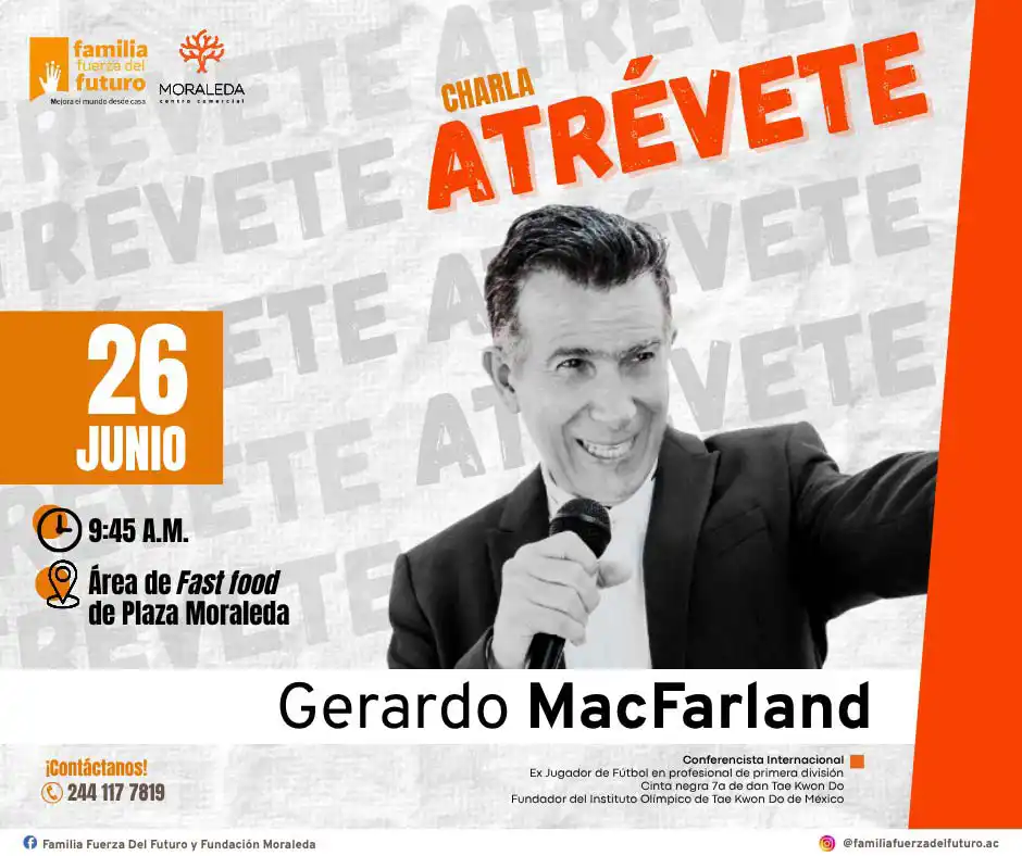 Tenemos el honor de presentarles la conferencia «Atrévete», impartida por una persona increíble que sabe mucho de superar obstáculos: ¡Gerardo Mac Farland!